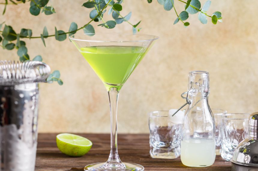 青柠汁的清新与 Chartreuse 利口酒的草本香交织在一起,还有金酒的植物香和马天尼比特酒的柔和香甜。