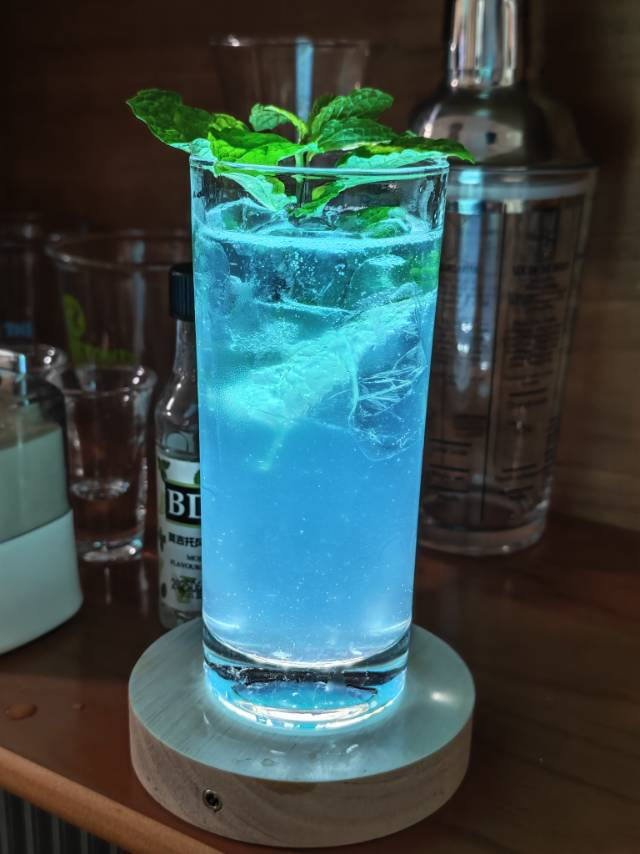 满分。 最容易复刻的酒品之一。 真的太好看了。 不过口感吗...就很没酒味,属于是酸甜气泡水带一点点酒精。 适合调酒师自己喝(?) 核心出装是薄荷叶,盒马6块钱100g,记得提前冰水浸泡 度数低 📸颜值爆表,🌿新鲜现摘