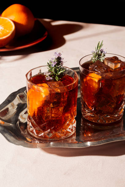 Americano鸡尾酒的制作简单却讲究,主要原料包括Campari、甜味美思(Vermouth Rosso)以及苏打水,三者共同创造出一种独特的平衡感。以下是基本的制作步骤: