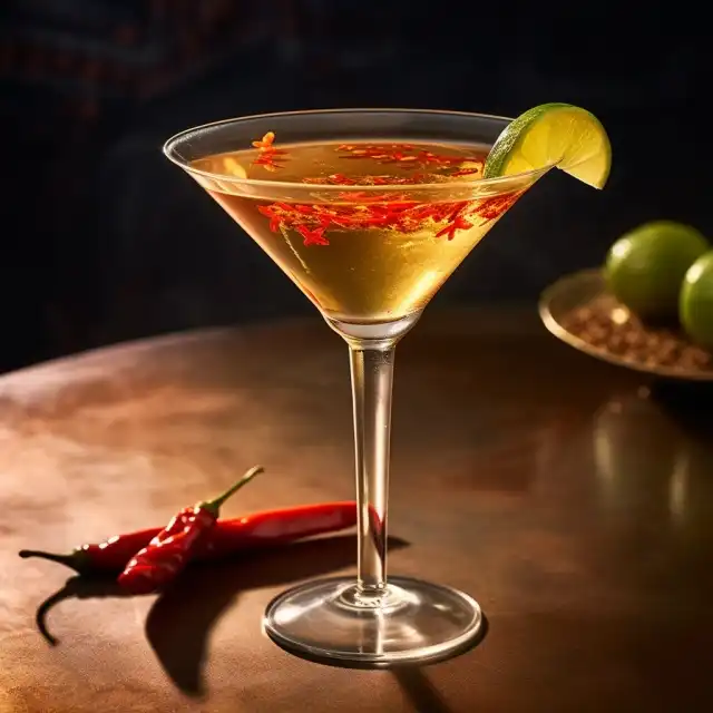 50毫升 香草味伏特加 15毫升 接骨木花糖浆 15毫升 新鲜青柠汁 10毫升 蜂蜜糖浆 2片 薄薄的红辣椒片
