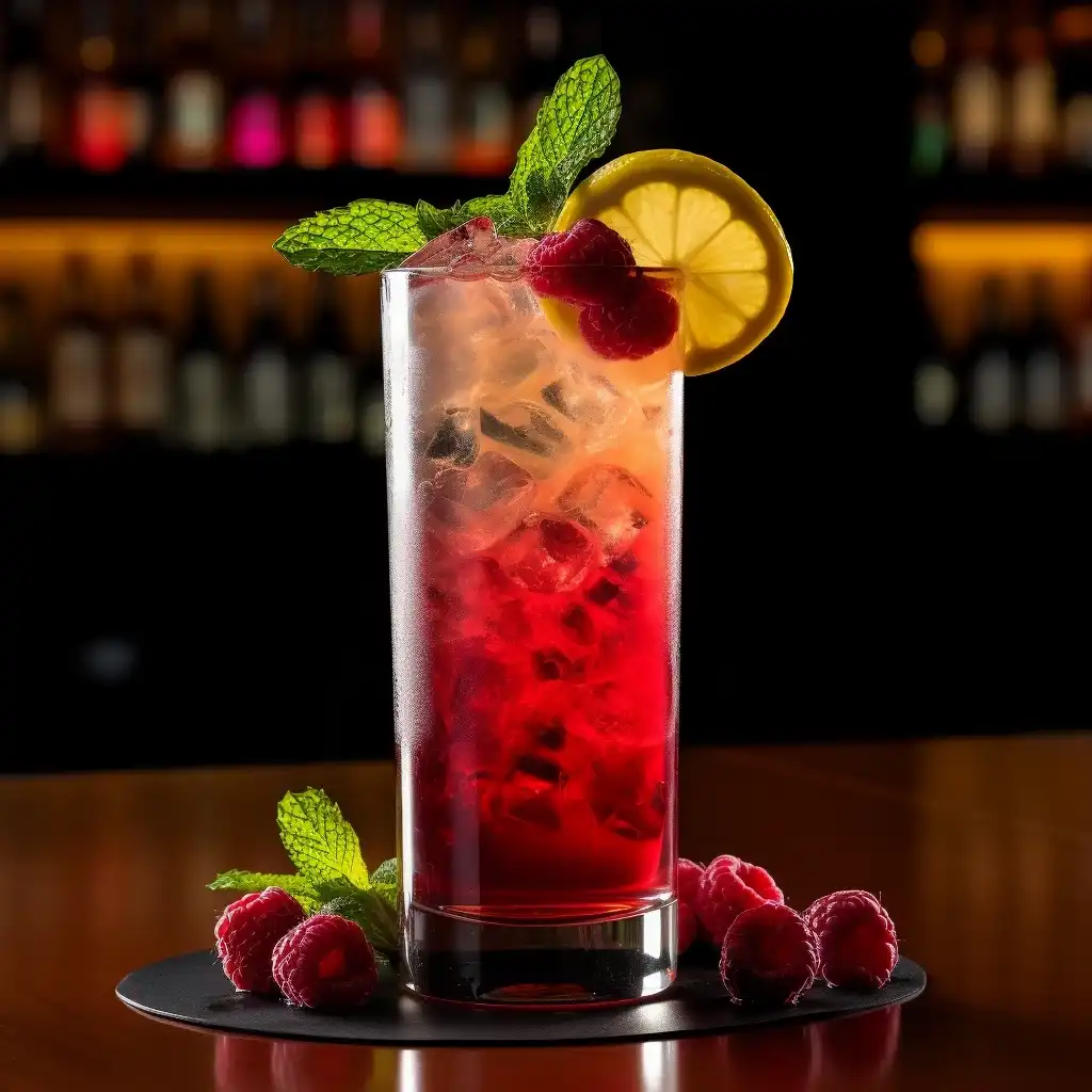鸡尾酒“覆盆子潘趣酒”是一种清爽的饮料,将覆盆子的甜味和果味放在首位。这款鸡尾酒以其明亮的粉红色和果味而闻名。