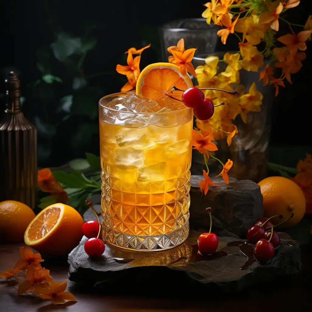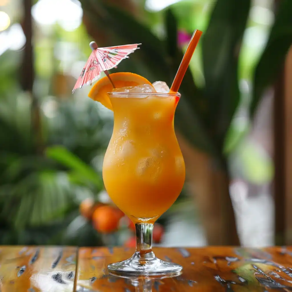 融合了多种朗姆酒和果汁以及香料等调料制成的鸡尾酒。口感浓烈且层次丰富带有浓郁的果香和香料的味道。