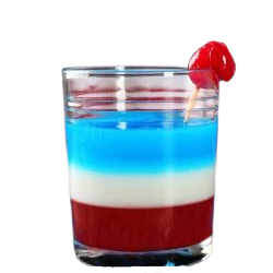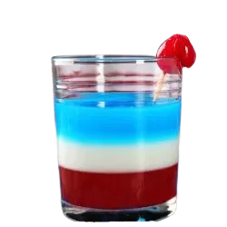 红蓝白三层糖浆秀,伏特加混酸汁与蓝橙,致敬同名棒棒糖的视觉甜酒。