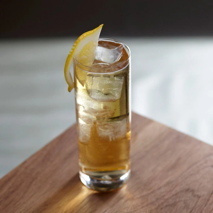 美国威士忌兑七喜,1970年代因成分同名流行,柠檬角点缀。